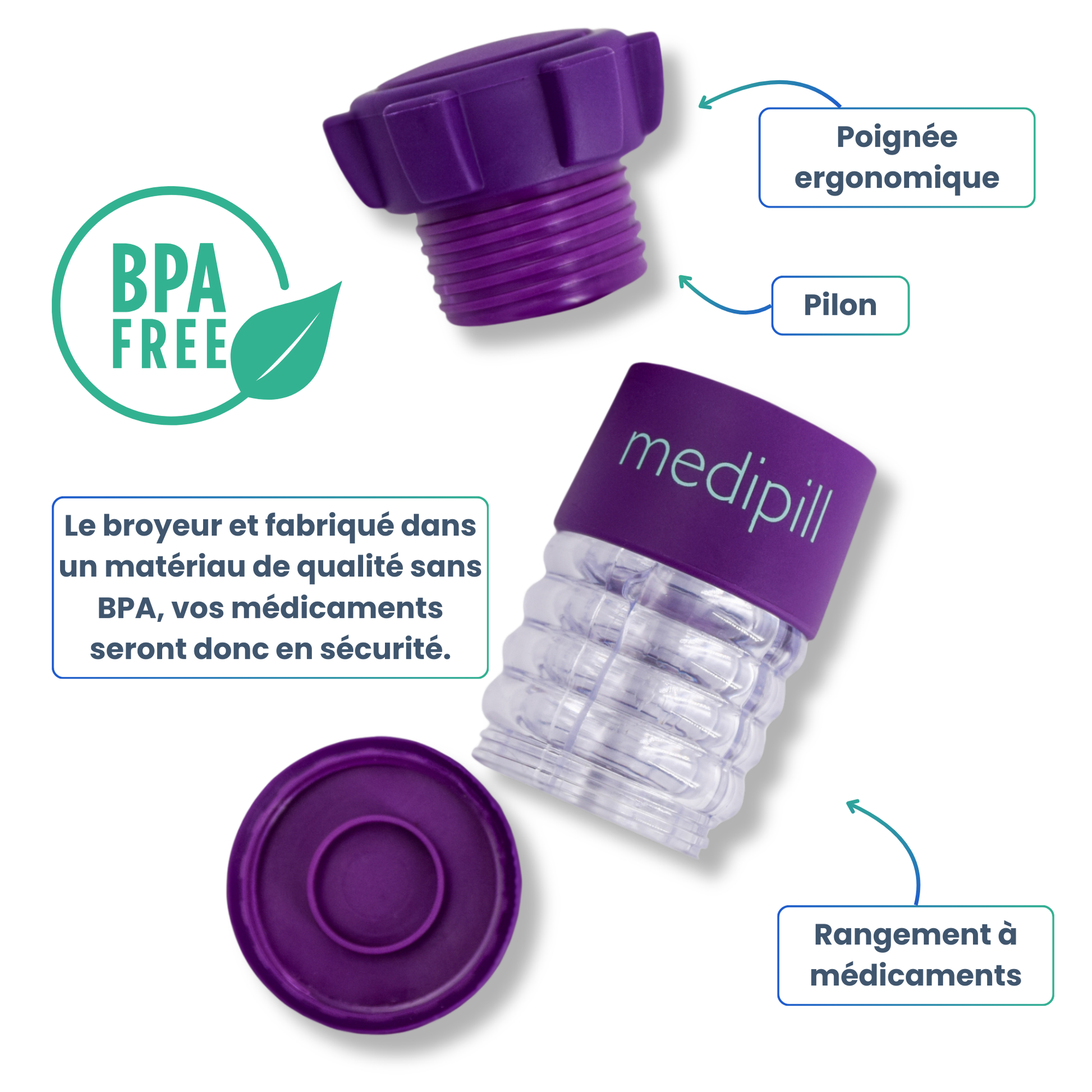 - 🛡️ SÉCURITÉ GARANTIE : Fabriqué en plastique de qualité supérieure et sans BPA, ce broyeur à comprimés assure une utilisation sans danger. Conçu pour éviter toute contamination et toute blessure, il est également facile à nettoyer, garantissant une hygiène optimale à chaque utilisation. Vous pouvez broyer vos pilules en toute sécurité et confiance.