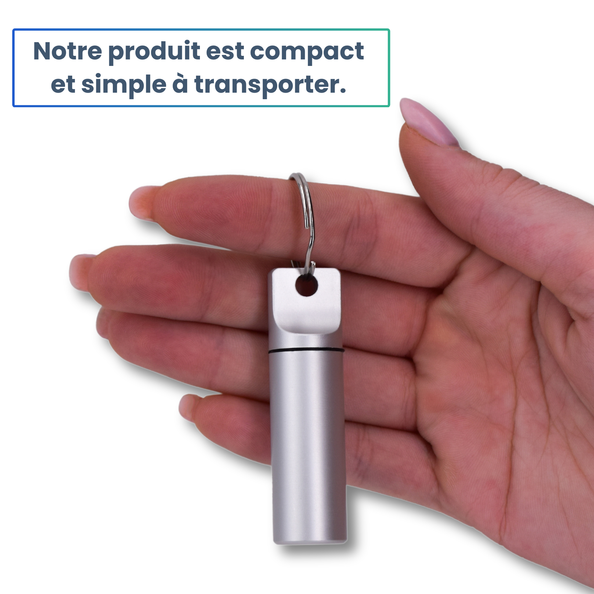 - đ EMPORTEZ PARTOUT : Notre pilulier en aluminium, de petite taille et lĂ©ger, vous permettra dâemporter vos mĂ©dicaments lors de vos dĂ©placements grĂące Ă son systĂšme dâattache en porte clĂ©.