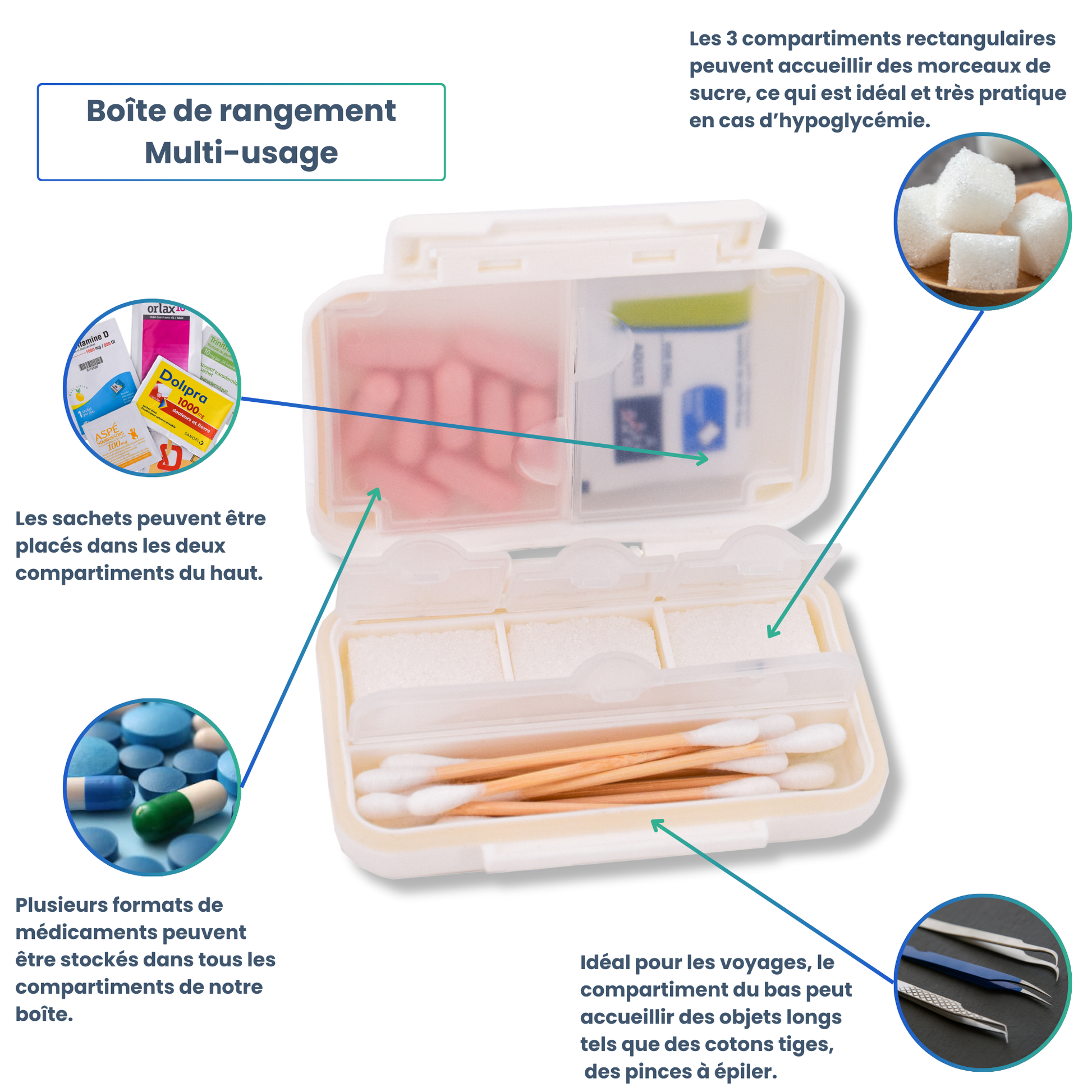 - 👜 EMPORTEZ PARTOUT : Pilulier journalier compact et léger, idéal pour emporter vos médicaments lors de vos déplacements. Sa petite taille (7 x 10 x 2,5 cm) permet de le glisser facilement dans votre sac à main, valise ou poche.