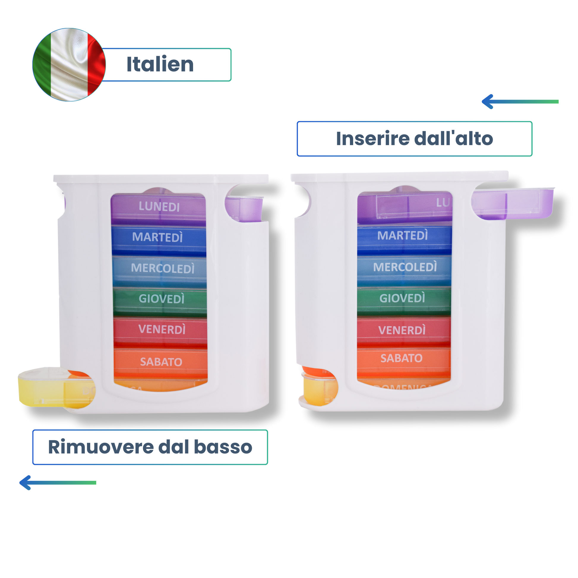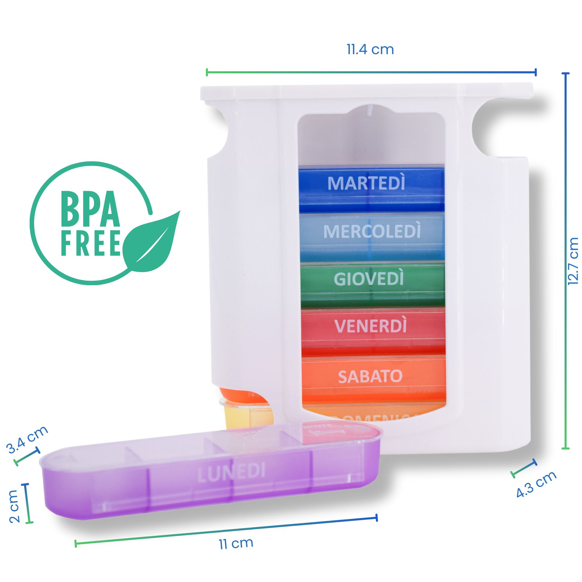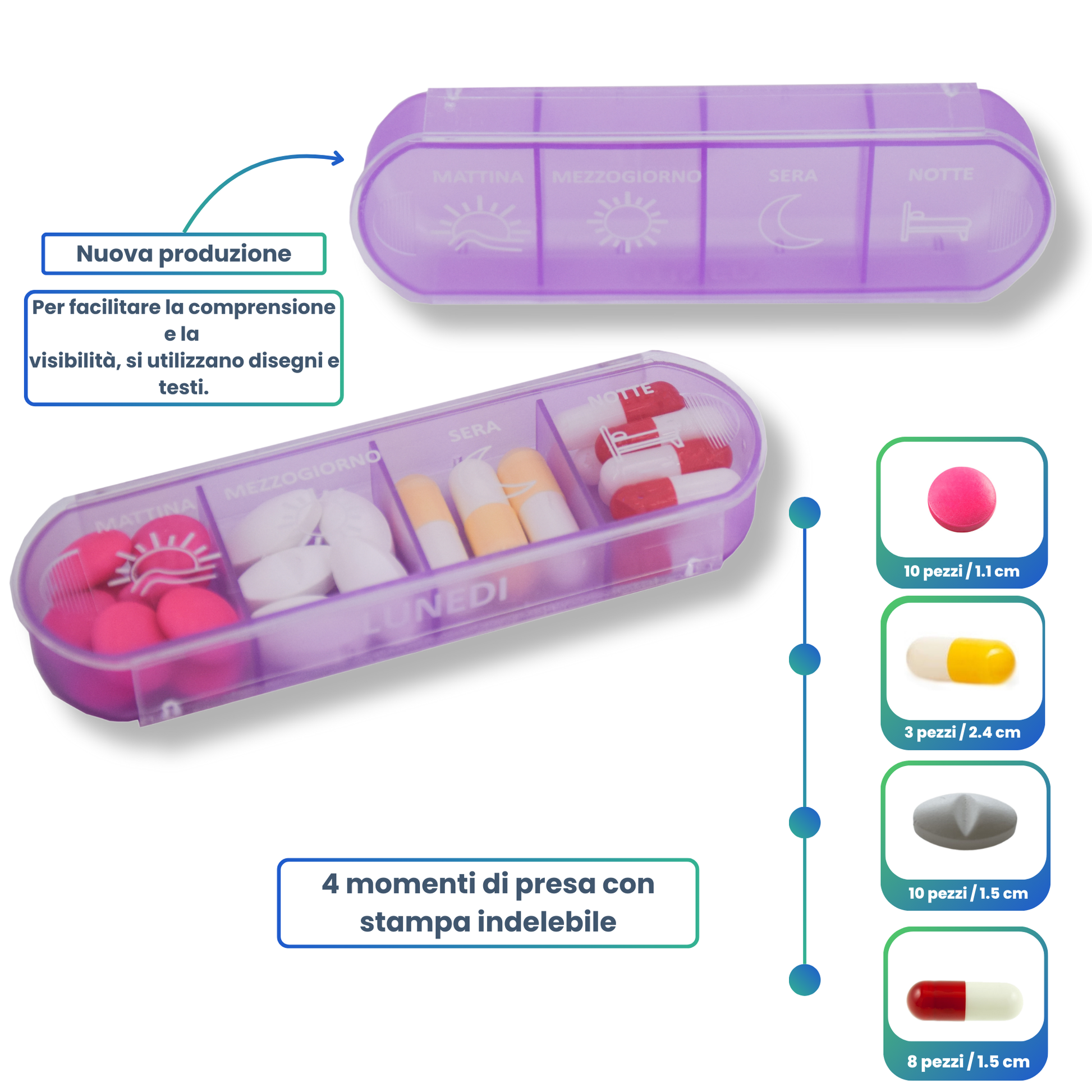- đïž ORGANISATION HEBDOMADAIRE : Pilulier semainier avec 7 barrettes, chacune divisĂ©e en 4 compartiments pour matin, midi, soir et coucher. IdĂ©al pour planifier vos mĂ©dicaments sur une semaine complĂšte.