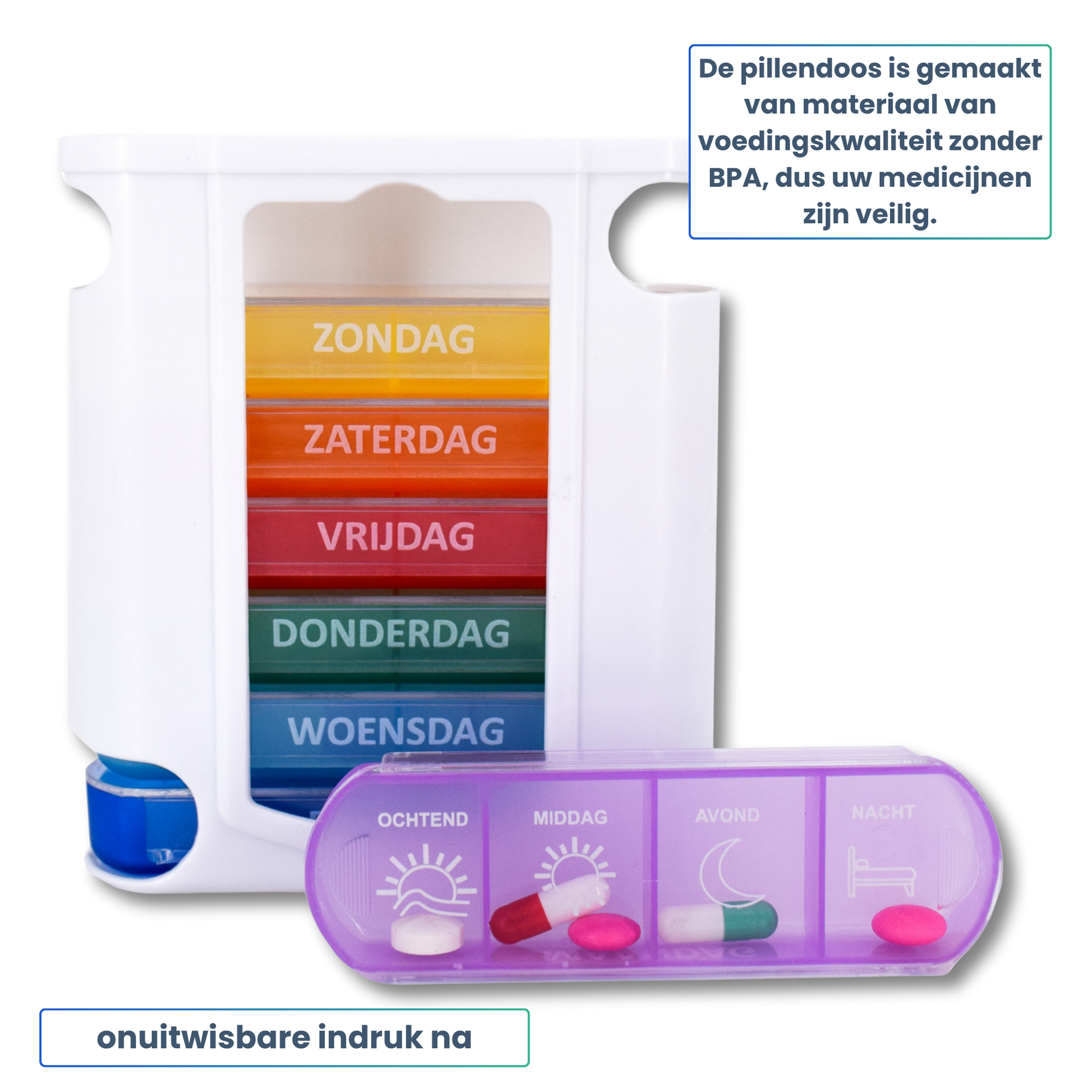 - đĄïž SĂCURITĂ ALIMENTAIRE : FabriquĂ© en plastique sans BPA et sans substances toxiques, garantissant une conservation sĂ»re de vos pilules sans risque de contamination. Les inscriptions des jours de la semaine restent lisibles avec le temps.